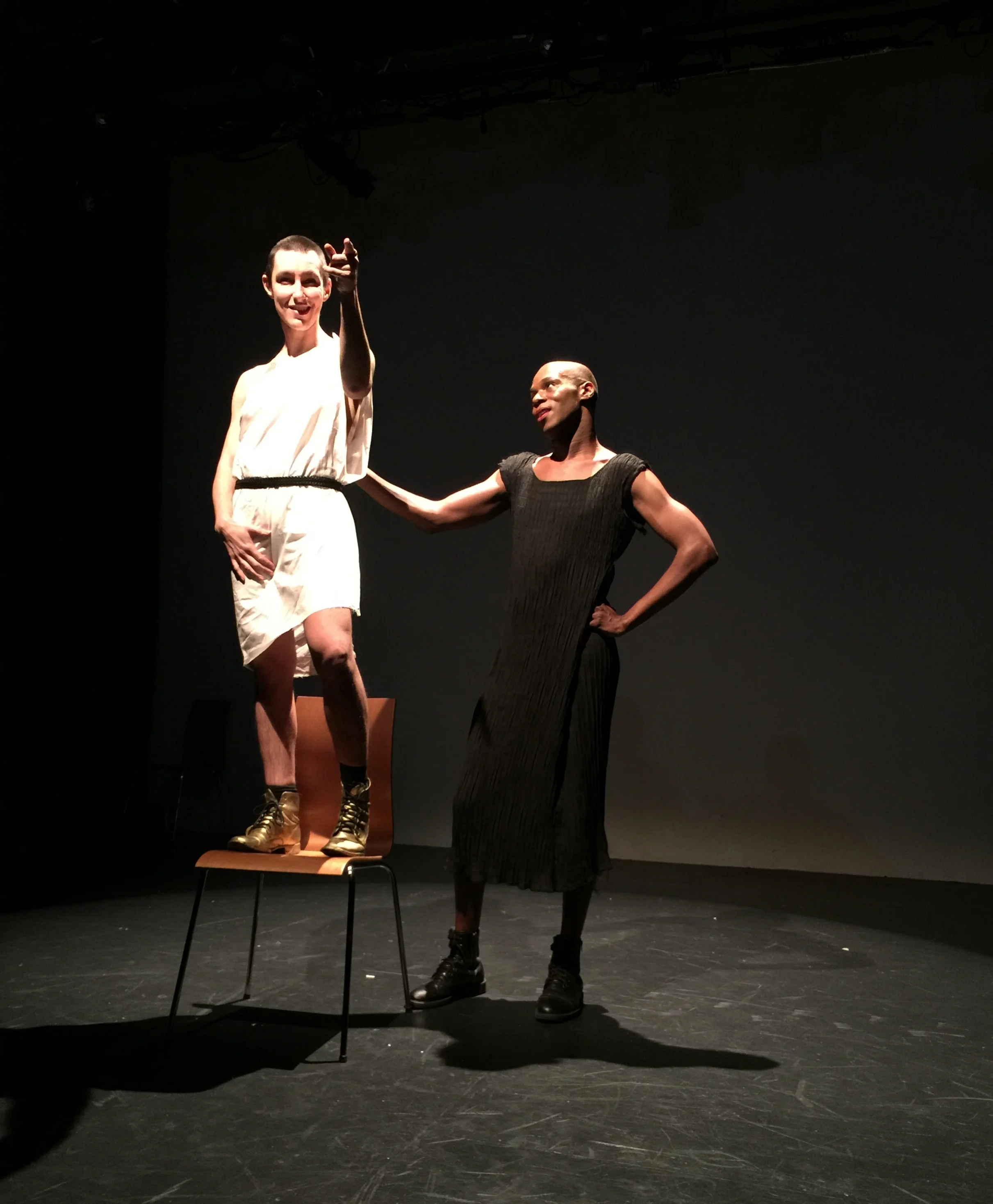 Brian as Cleopatra and C Bain as Antony in "Here, Serpent" at Dixon Place, New York, NY.Photo by Belen Moreno